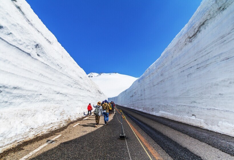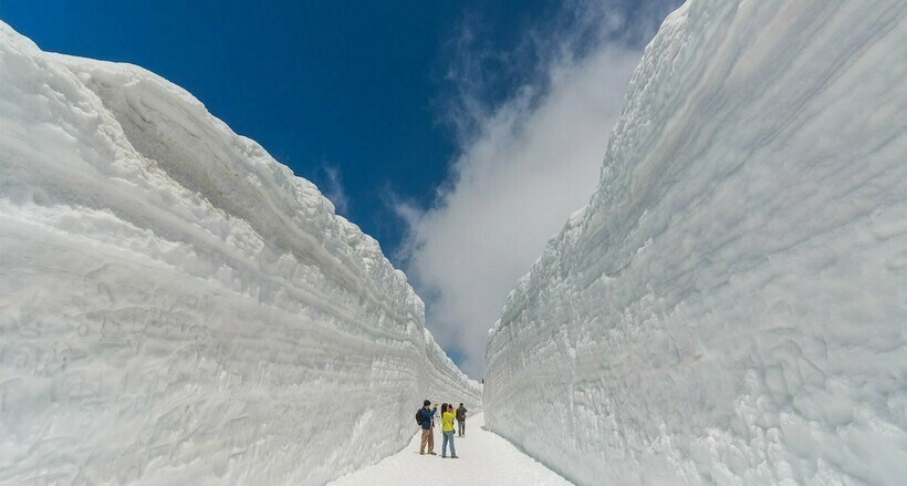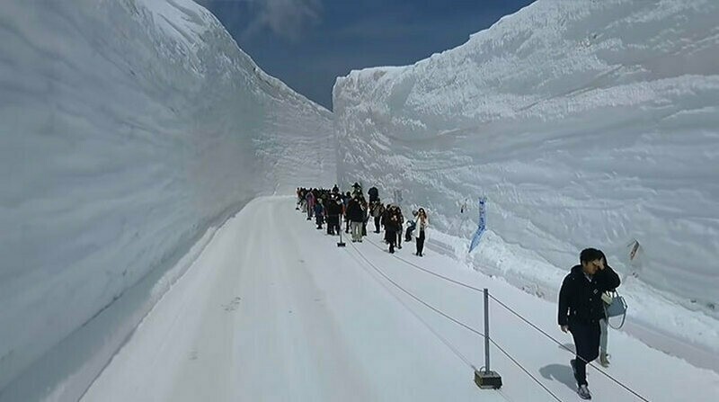 Однако весна в Японии не везде ассоциируется с цветами на деревьях, апрель в некоторых регионах еще и самый популярный месяц для снежного туризма. И если вдруг вам кажется, что снег — это вообще не про Японию, то спешим вас разуверить: именно в Японии находится место, где выпадает больше всего снега на планете. А в Японских Альпах (да-да, Альпы тоже далеко не первое, с чем может ассоциироваться Япония) есть уникальная дорога, которая больше напоминает снежный коридор с 20-метровыми стенами.
