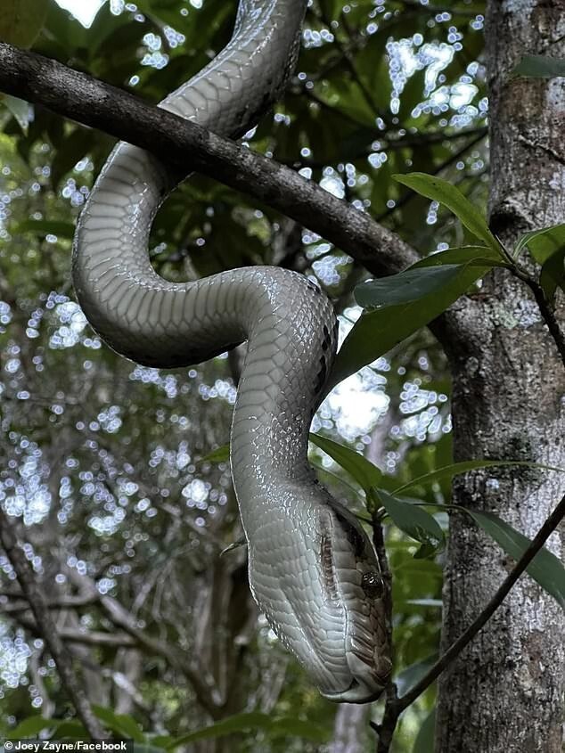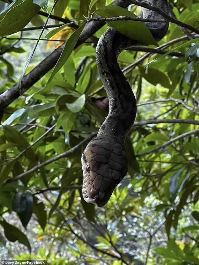 Херрингтон прогуливался по тропе с друзьями, когда заметил на дереве крупного питона. Он направил камеру телефона на 2,5-метровую змею, пока она скользила по ветке ему навстречу.
