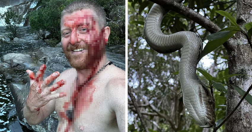 Джоэл Херрингтон наслаждался прогулкой по популярной тропе в ущелье Бехана на севере австралийского штата Квинсленд, когда заметил питона на дереве и попытался его сфотографировать. Однако рептилия тут же набросилась на него и укусила. Херрингтон позже сравнил сбивший его с ног удар с резкой пощечиной.