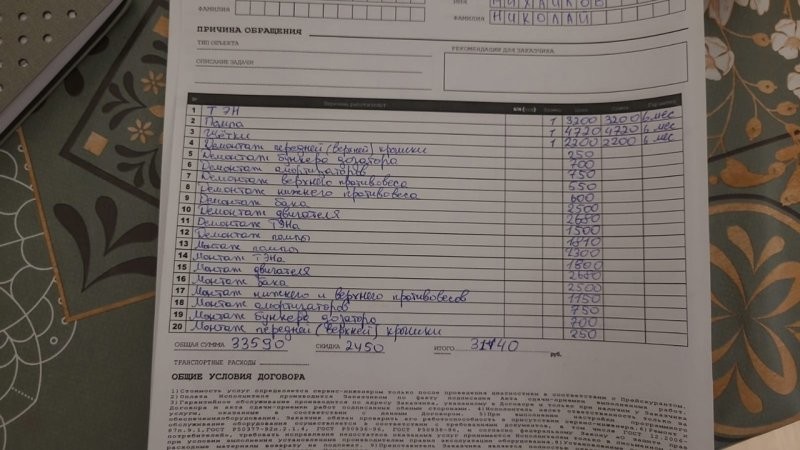 А вообще, подобные схемы ремонта, похоже, поставлены на поток. Как вам нравится этот заказ-наряд?
