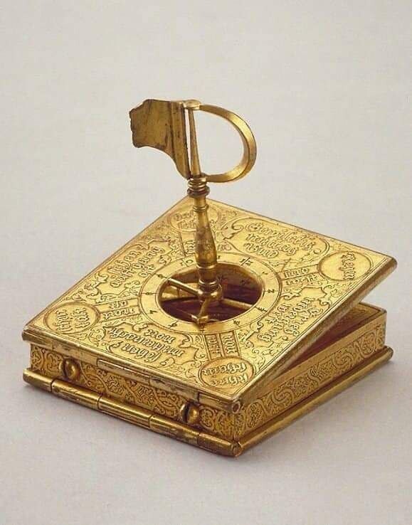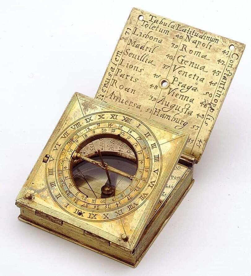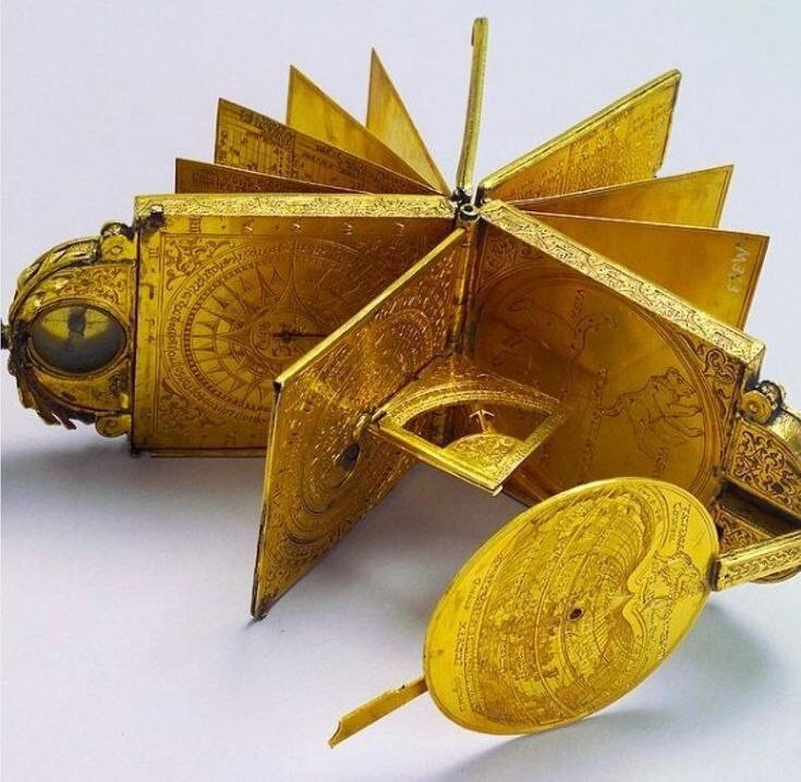 Это был не дешевый набор и, очевидно, указывал на богатство владельца. На фото представлен астрономический компендиум, около 1550 гг., Аугсбург, позолота, латунь.