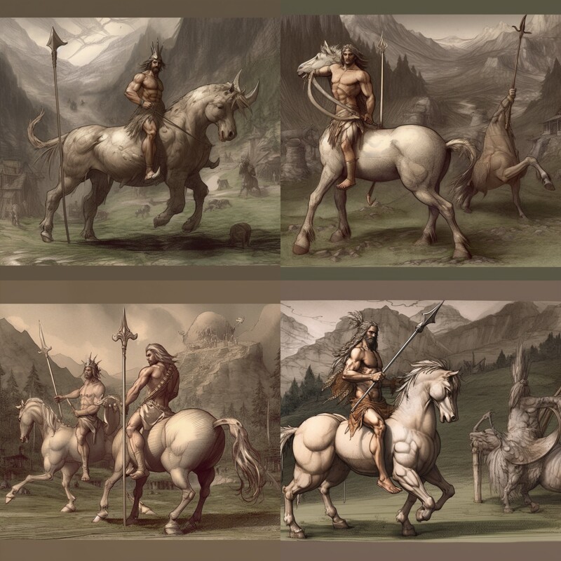 Дальше настала очередь существ Оплота. Жаль, что кентавры никак не хотели получаться. Midjorney с упорством рисовала человека на коне. Прямое указание на изображения кентавров успеха не возымело.