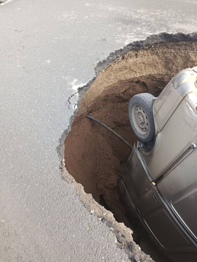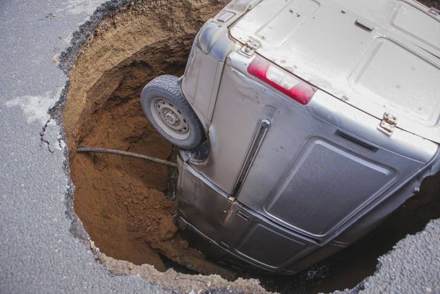 В Перми "ГАЗель" буквально провалилась под землю на ровном месте. Из-за прорванной канализации и размытия грунта машина с водителем целиком провалилась под асфальт. К счастью, мужчина, который был за рулем отделался только испугом. Вот и новая фобия для автомобилистов.
