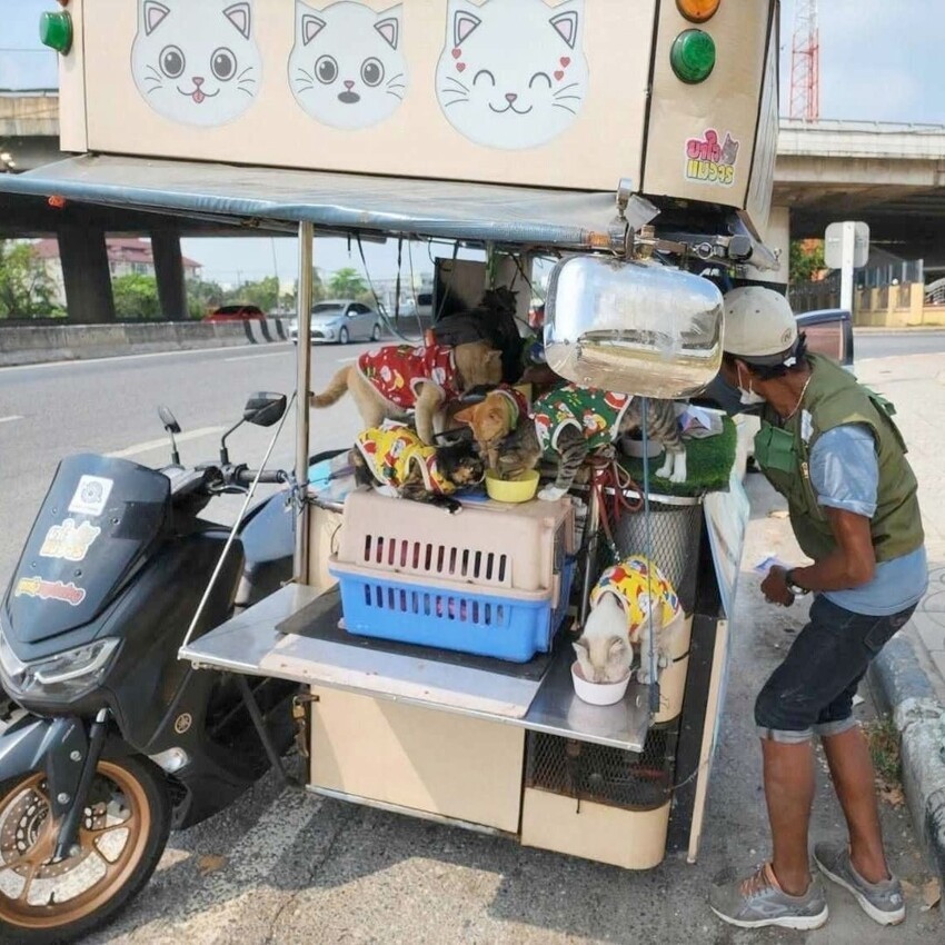 Еще в сентябре 2022-го года видео, на котором Тхепкох и его кошки путешествуют на мотоцикле с коляской, стало вирусным, собрав более 241 000 просмотров и 16 000 лайков.
