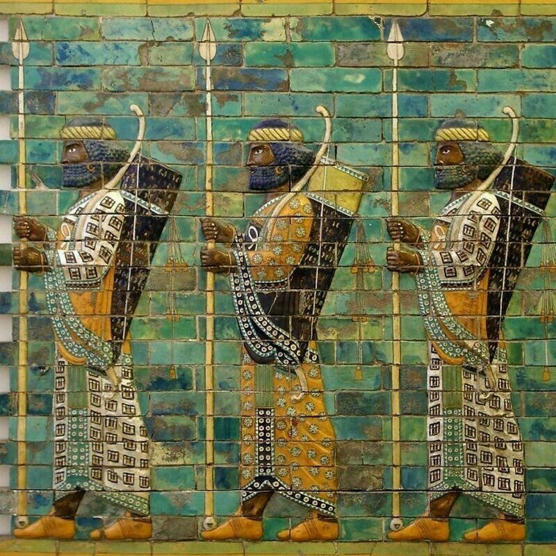 Изображение персидских воинов, найденное в иранском городе Сузы, VI век до н.э.