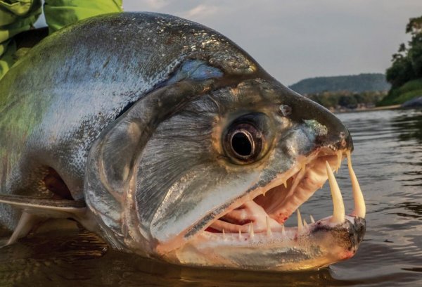 Скумбриевидный гидролик или паяра имеет огромные клыки, которые позволяют легко захватывать добычу