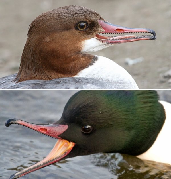 Большой крохаль имеет более ста пятидесяти острейших зубов