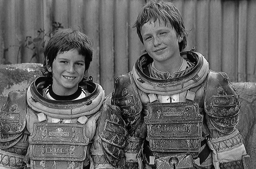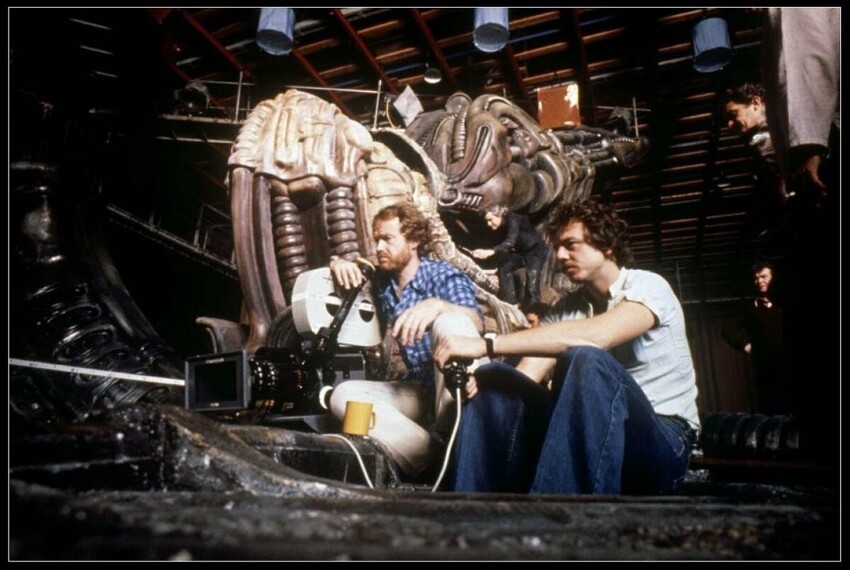 8. Кстати, в этом кадре (как, впрочем, и в остальных кадрах «космонавты на фоне инопланетных объектов») мы видим детей Ридли Скотта (Джейк и Люк, которым тогда было 12 и 9 лет соответственно) и оператора-постановщика Дерека Ванлинта, а вовсе не Тома Скерритта, Джона Хёрта и Веронику Картрайт. Таким образом предполагалось придать декорациям пущего размера.