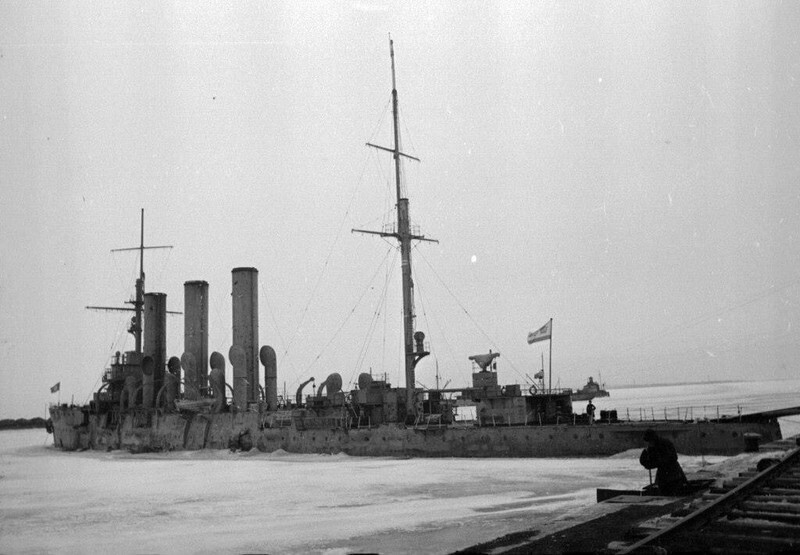 Крейсер «Аврора» в военном порту Ораниенбаума в период обороны Ленинграда. 1944 год