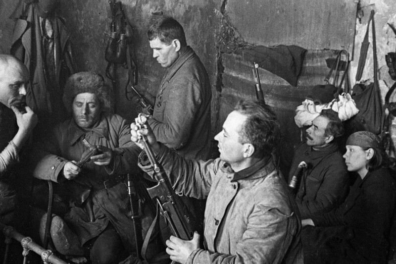 Партизаны чистят оружие. Сталинская область Украинской ССР , 1942 год