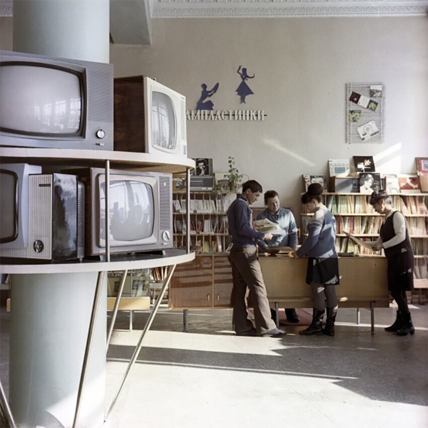 Магазин грампластинок в деревне Мерке в Казахстане, 1970 год