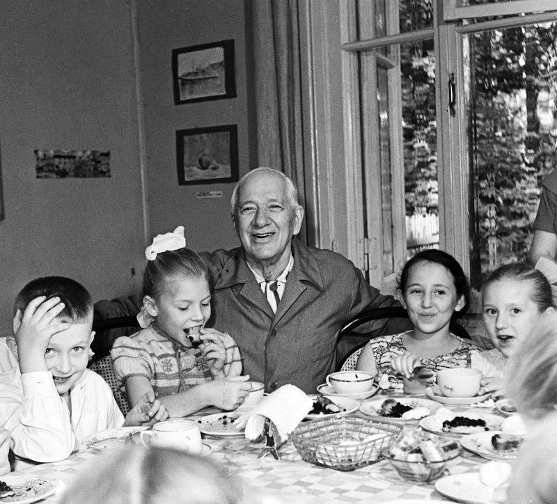 Писатель Корней Чуковский принимает гостей у себя на даче, 1961 год
