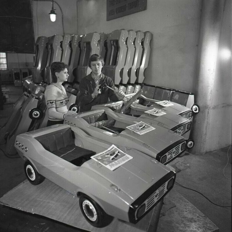 Пятёрка Жигулей в подшипнике на выставке в павильоне ВДНХ в Москве, 1980