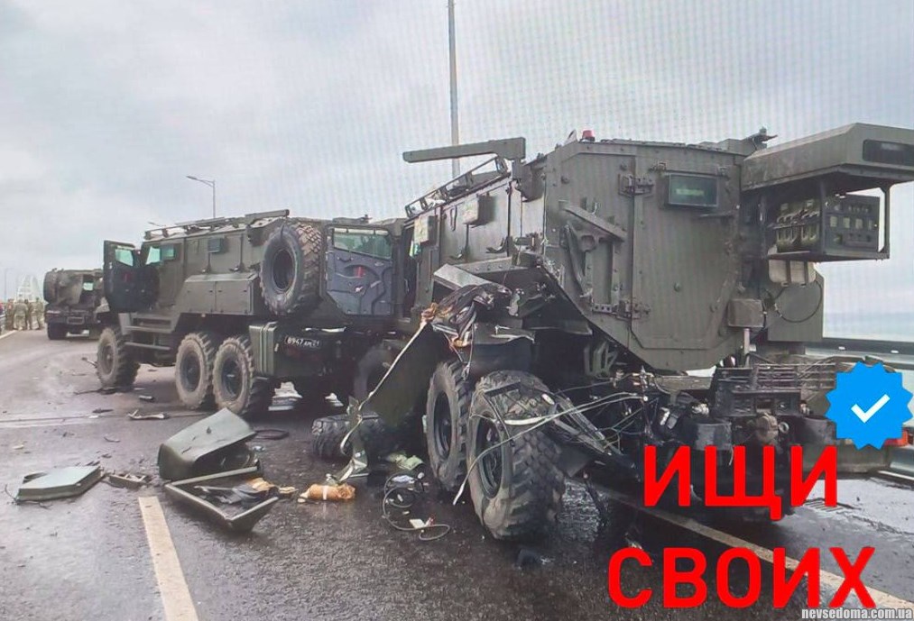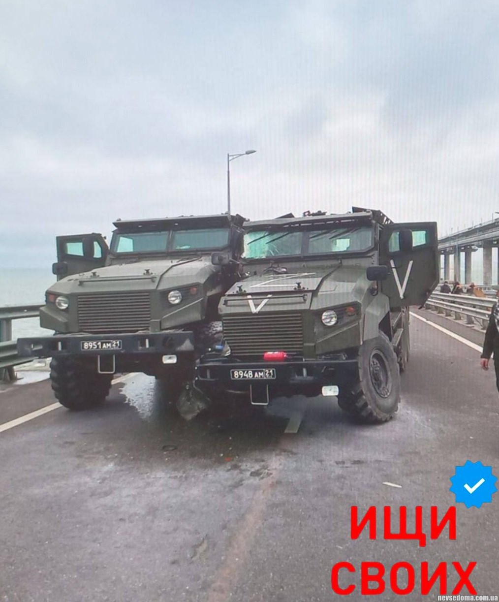 ▪️Речь идет о 5 бронемашинах 3-СТС «ахмат», которые столкнулись при переезде в Крым по мосту