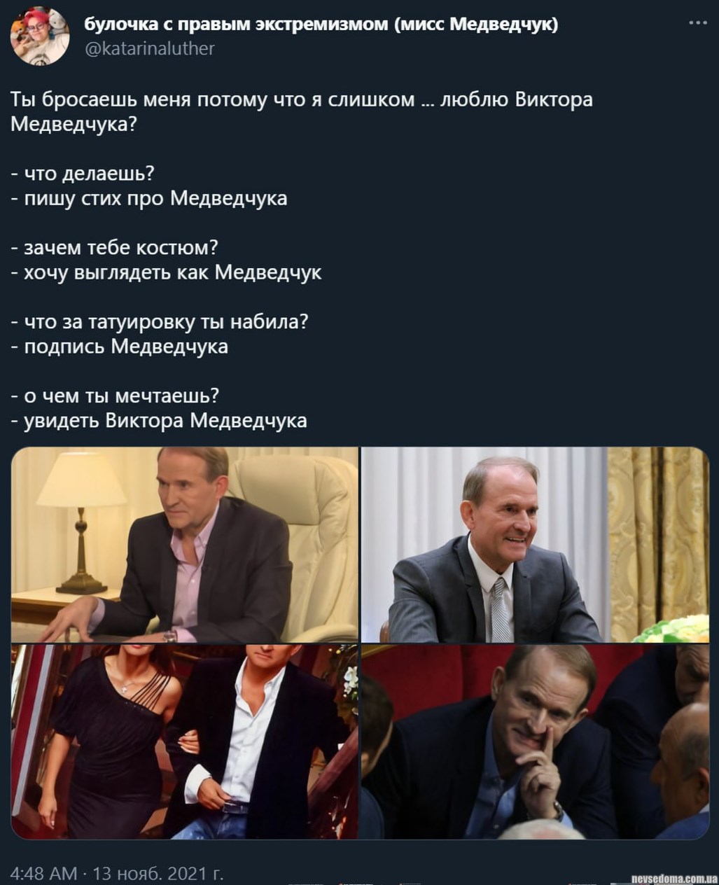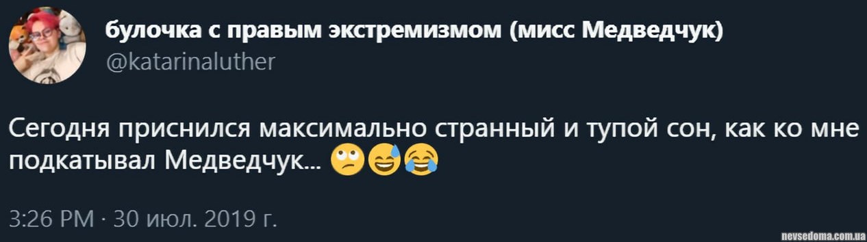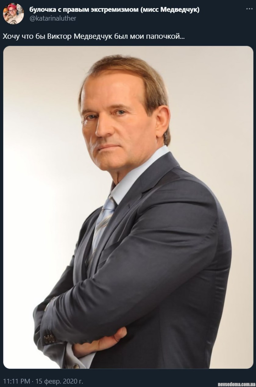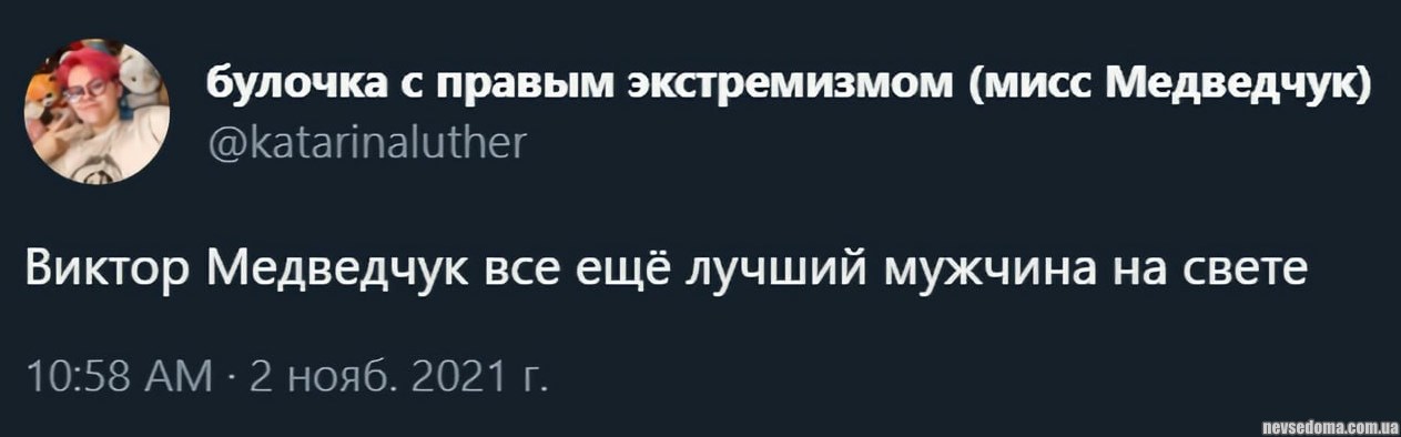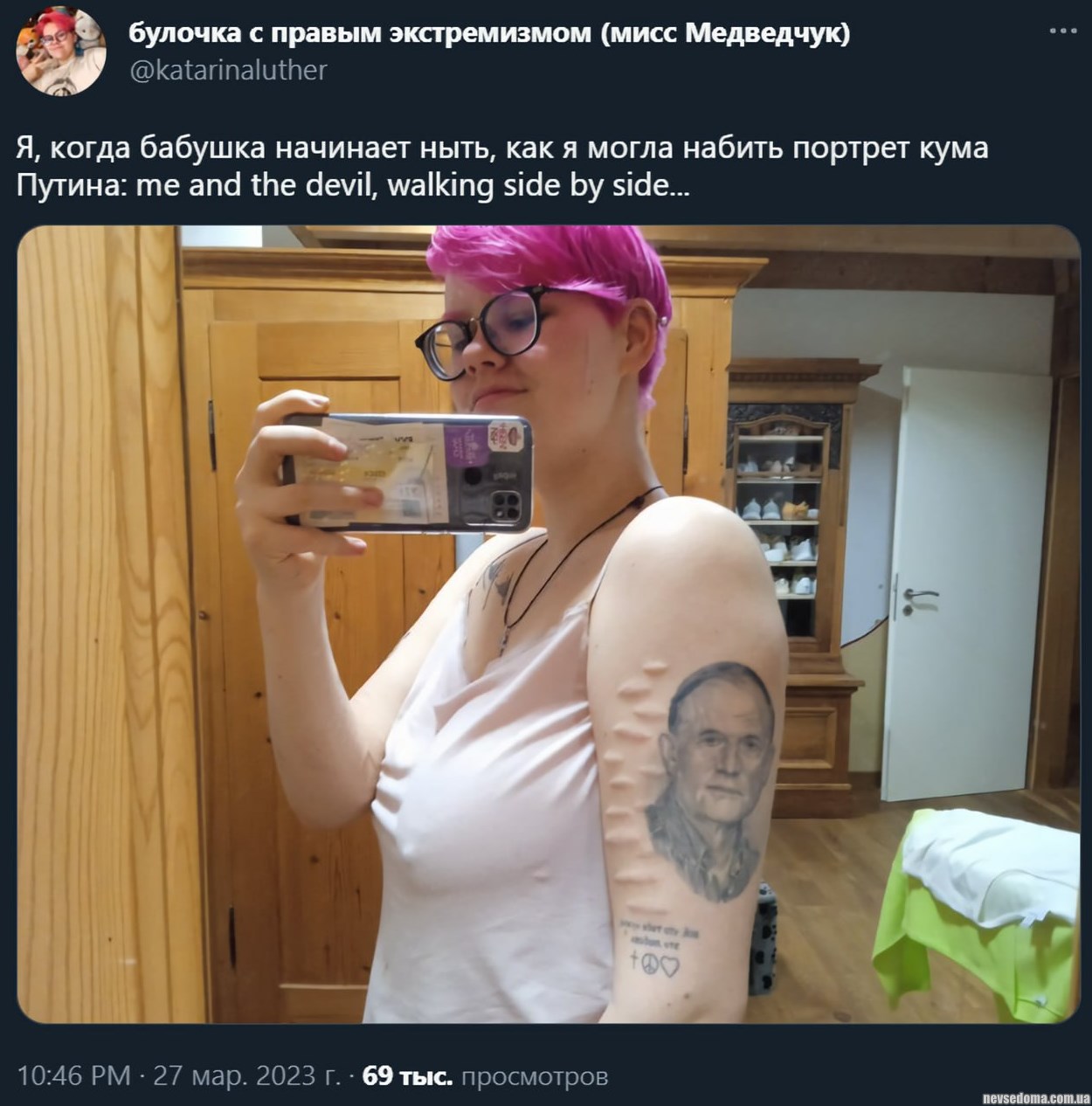- В твиттере обнаружили розоволосую фанатку Медведчука. Она мечтает о встрече с ним и даже набила татуировку с его портретом.