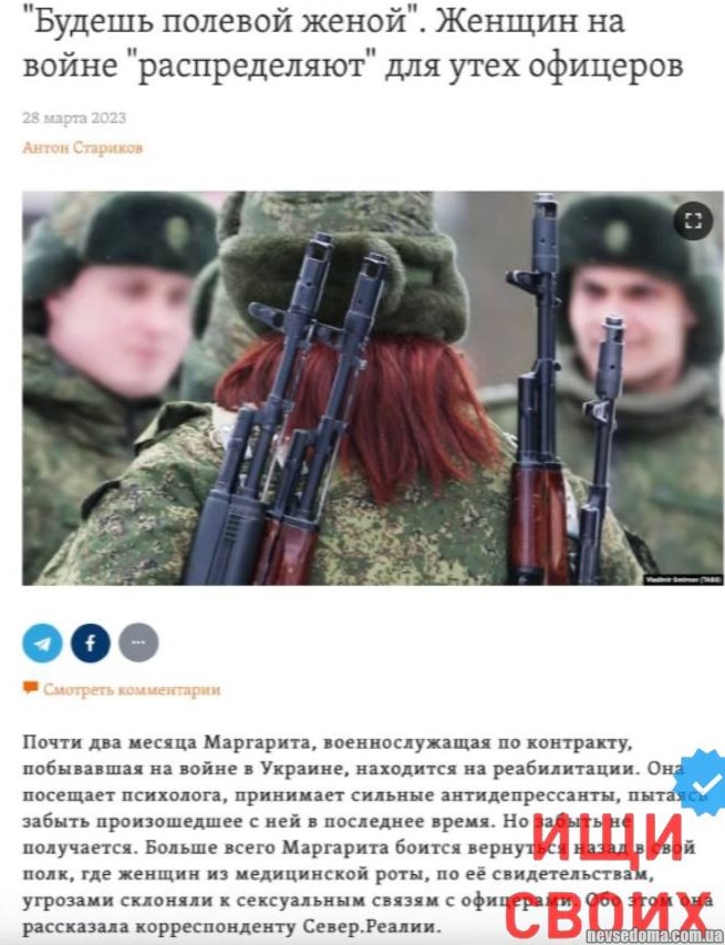 ▪️Женщин, которые поступают на контракт в медроты, командование заставляет им готовить, стирать и ублажать.