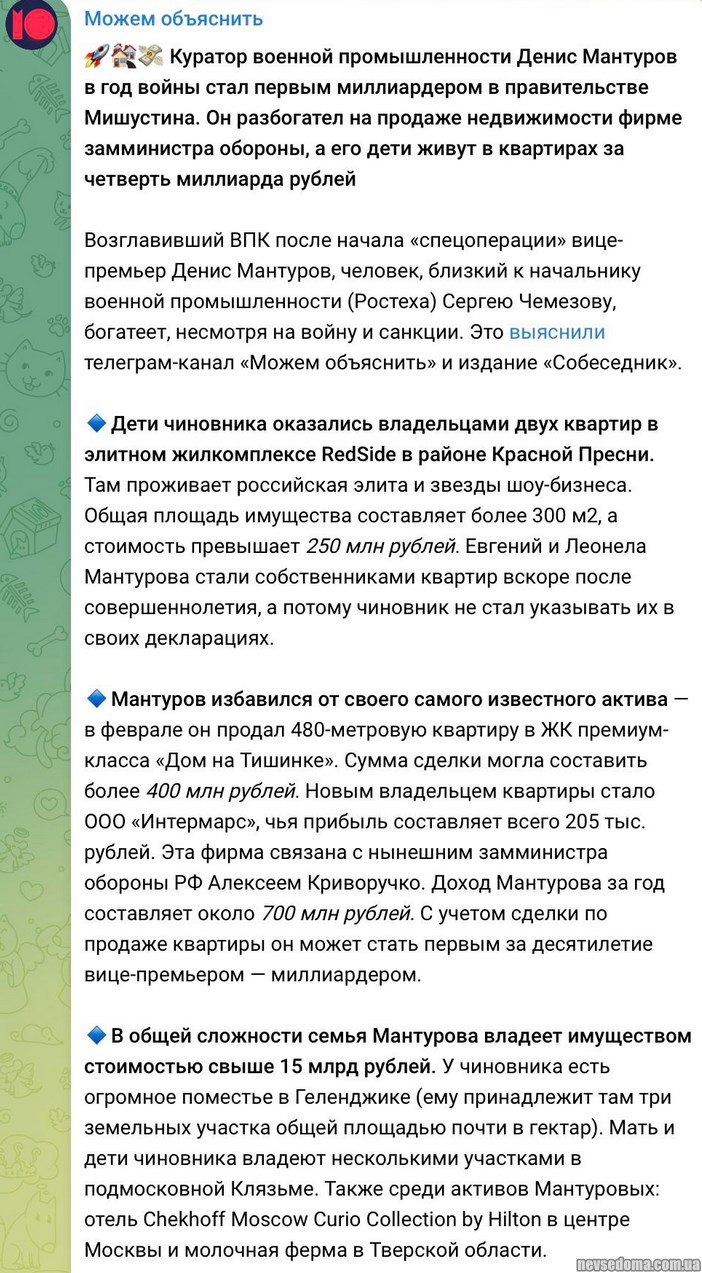 - Вице-премьер правительства фашистской россии Денис Мантуров за год войны в Украине стал первым миллиардером в правительстве Мишустина