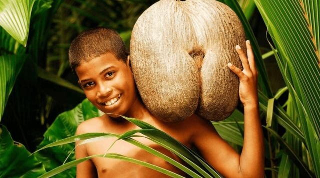 Это самое большое семя в мире, принадлежащее сейшельской пальме. Это семечко редкого вида сейшельской пальмы (Lodoicea maldivica), которая растёт только на двух островах Сейшельского архипелага. Больше нигде в мире её отыскать нельзя. Семена этого дерева считаются самыми большими из всех растений и могут весить до 25 килограммов.