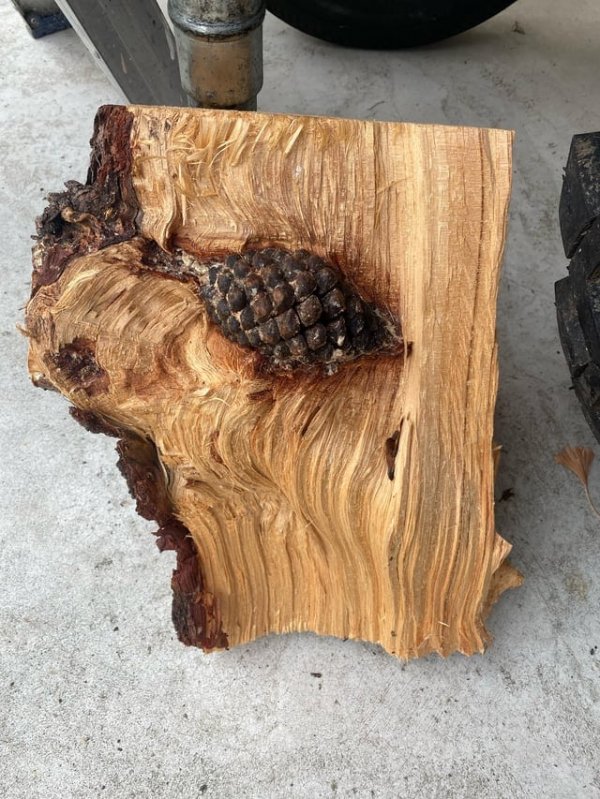 Сосновая шишка, выросшая внутри ствола дерева. Такое явление характерно для некоторых видов сосен