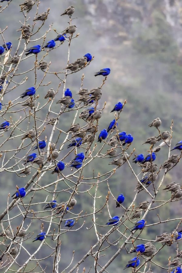 Лазоревая птица. Явная разница между мужскими и женскими особями. Самцы окрашены в ярко-синий. Самки же носят нейтральное серое оперение.