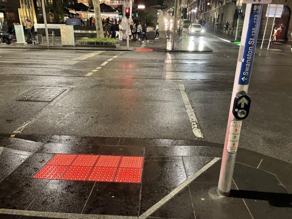 Тактильное покрытие меняет цвет в зависимости от цвета светофора