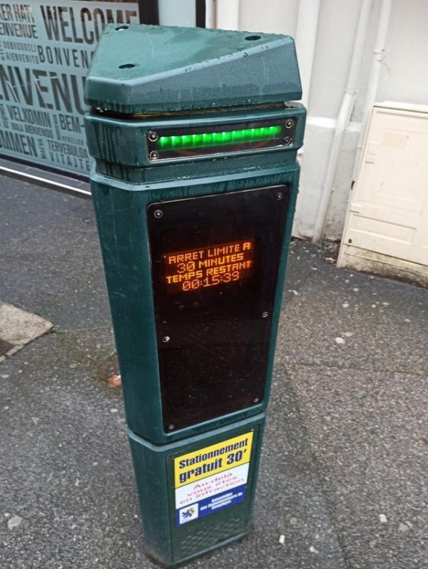 Столбик, отображающий оставшееся разрешенное время парковки автомобилей (30 минут для каждого автомобиля)