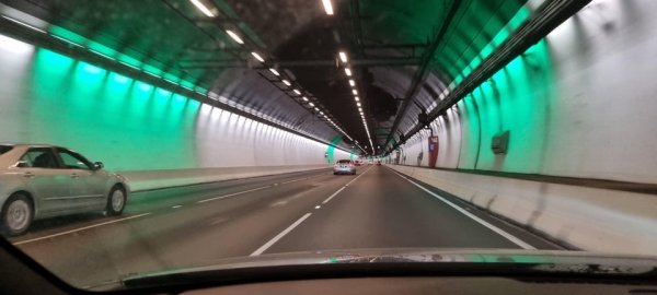 Эти зелёные световые кольца движутся со скоростью, установленной ограничением в этом туннеле. Это помогает водителям сориентироваться, с правильной ли скоростью они движутся