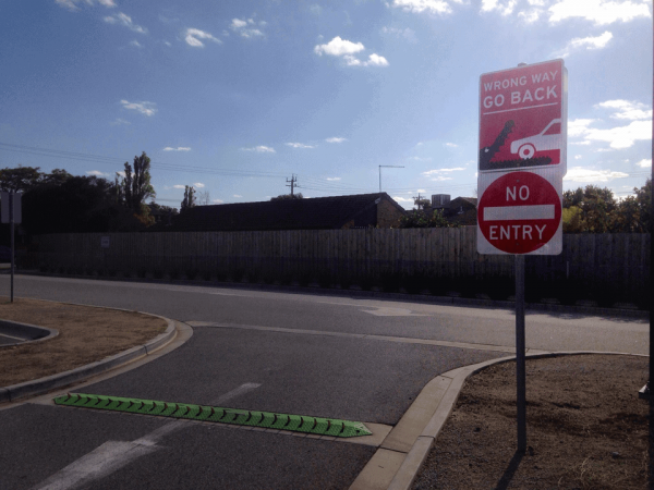 Рядом с детским садом в Австралии дорогу с односторонним движением оборудовали шипами