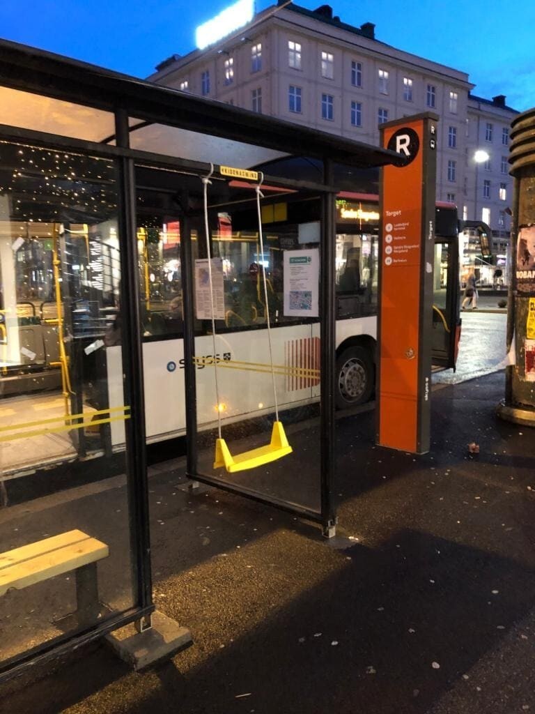 В норвежском городе Берген есть качели для детей на автобусной остановке