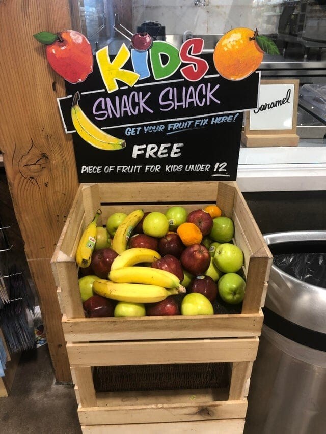 В этом магазине есть бесплатные фрукты для детей, чтобы они могли перекусить, пока взрослые заняты покупками