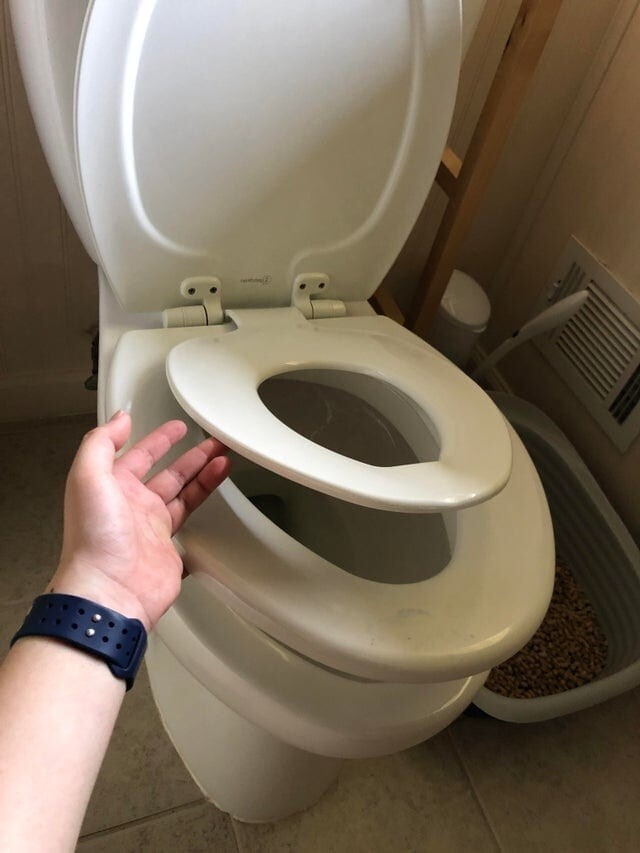 Унитаз имеет два ободка, как для взрослых, так и для детей