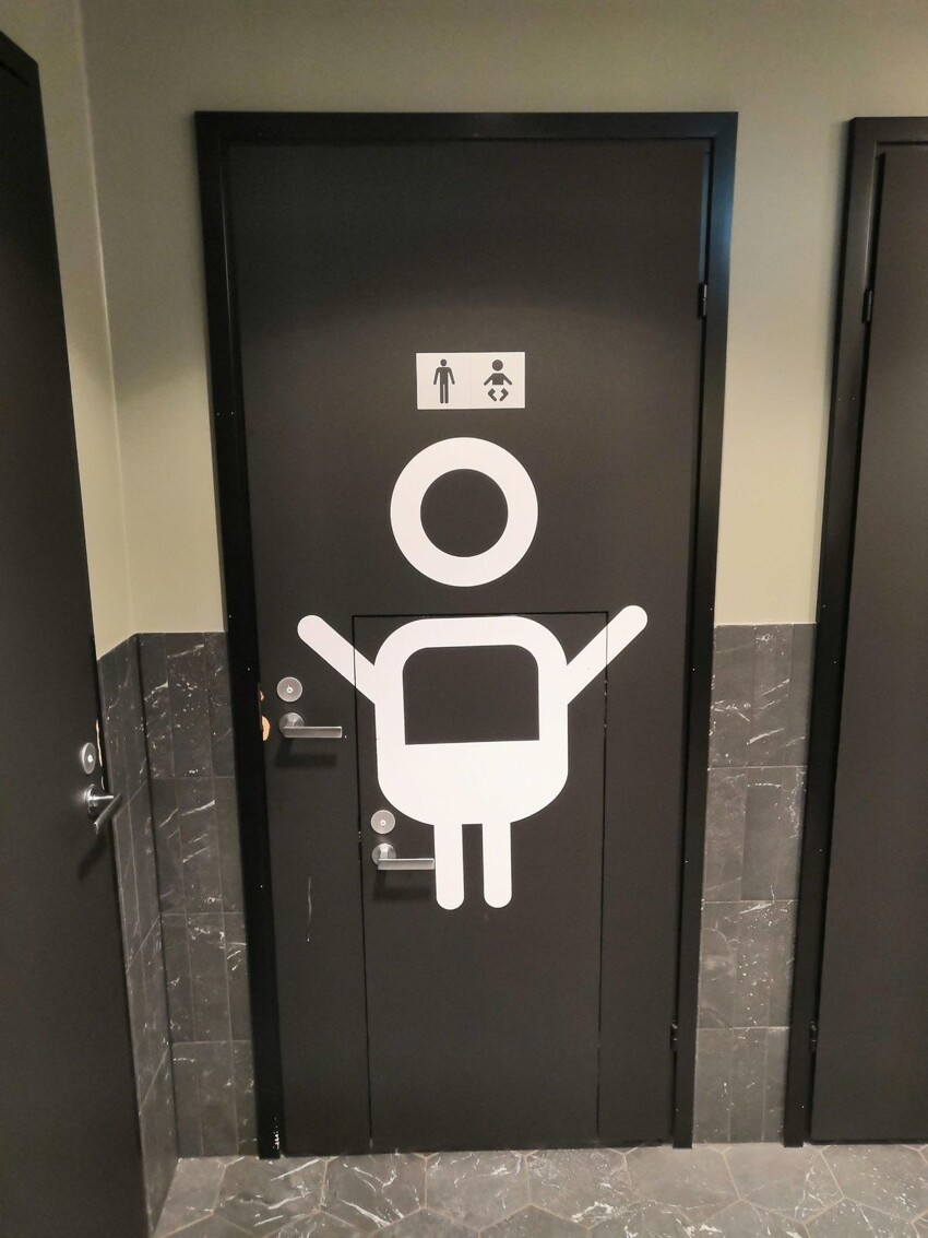 В двери в общественный туалет встроена ещё одна дверь поменьше специально для детей