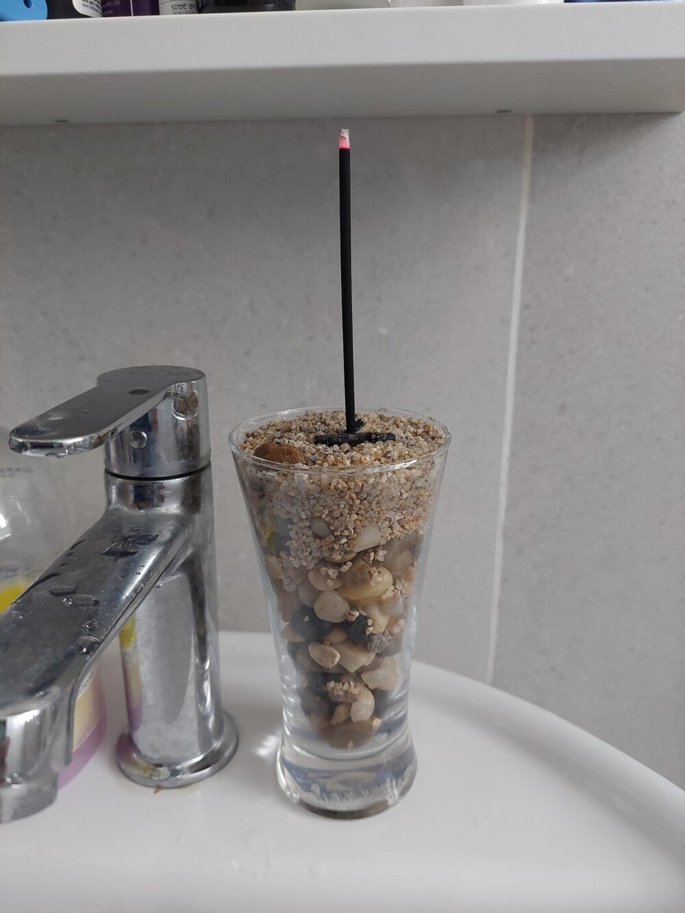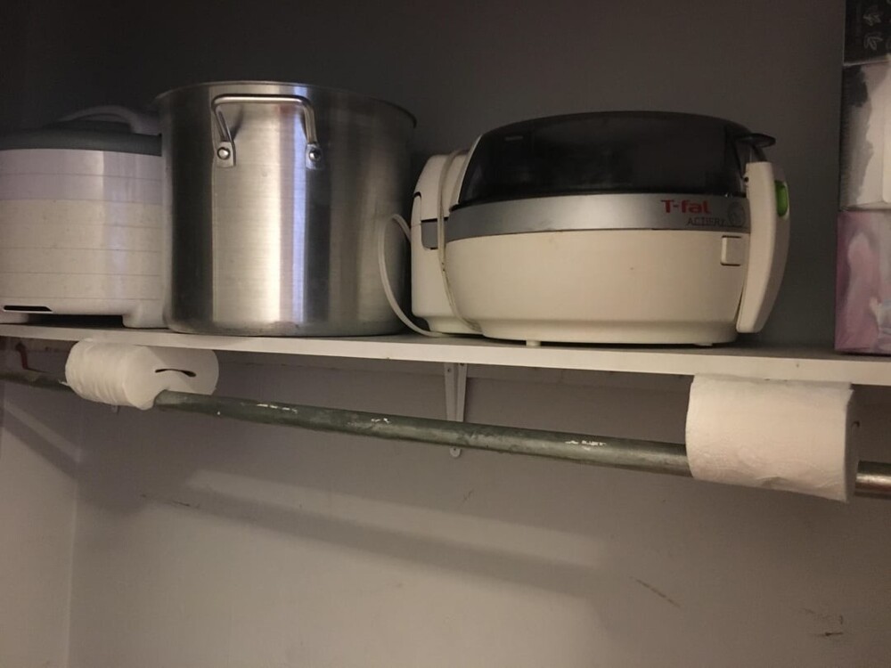 5. Кухонная полка наклонилась вниз, поэтому я использовала туалетную бумагу
