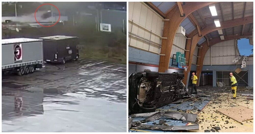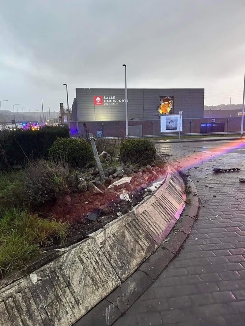 Бельгийский футболист взлетел на автомобиле и пробил стену спортзала (4 фото + 1 видео)