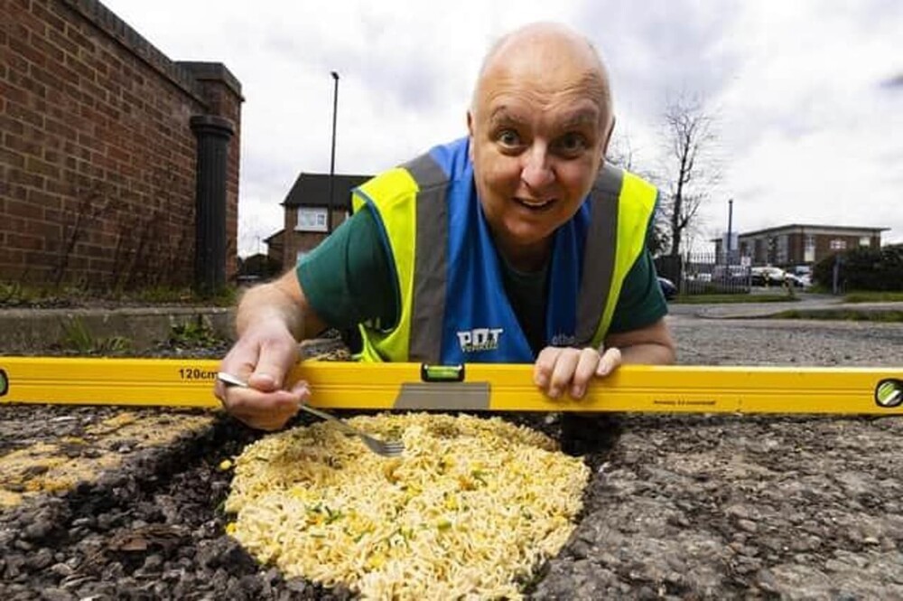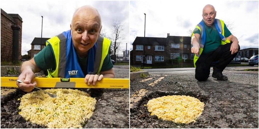 "Чем ещё заполнить ямы, как не лапшой, чтобы продемонстрировать смехотворное состояние дорог Великобритании?" - написал мужчина.