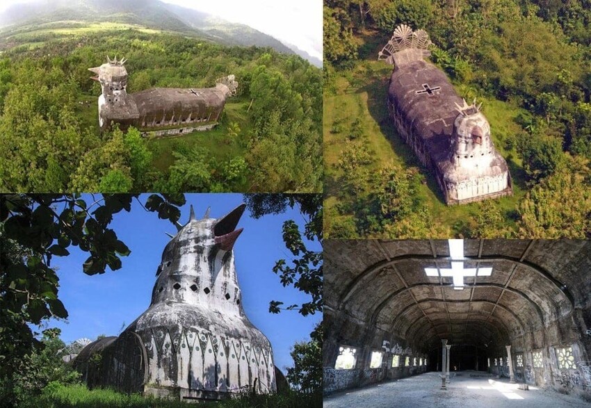 8. В глубине лесов Индонезии находится заброшенная церковь в форме курицы