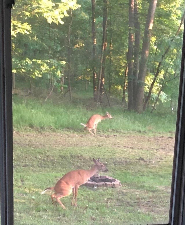 2 оленя решили сходить в туалет прямо за моим окном. Вот это совпадение