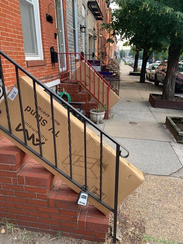 Моему соседу, с которым я только что познакомился, доставили точно такую же тумбу под телевизор, что и мне, в тот же день