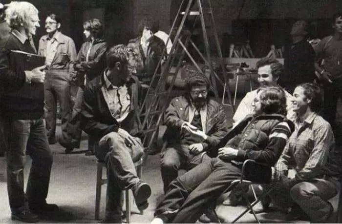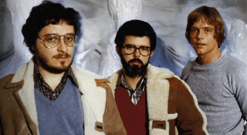 Лоуренс Кэздан с Лукасом и Хэмиллом на съёмочной площадке пятого эпизода «Звёздных войн»