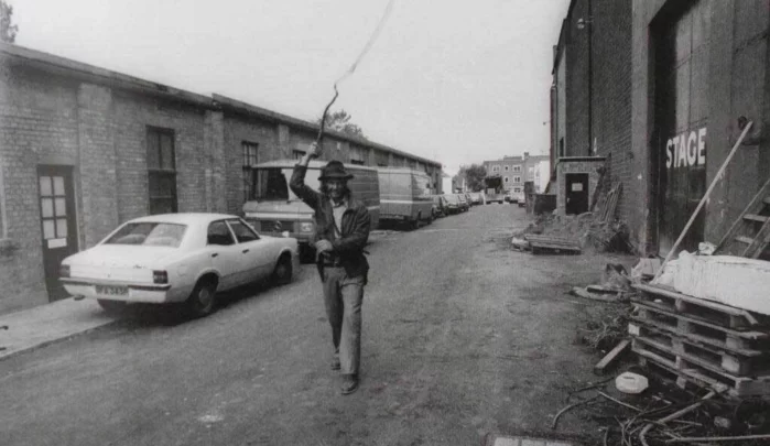 Харрисон Форд упражняется с хлыстом в переулке перед студией Elstree в Англии