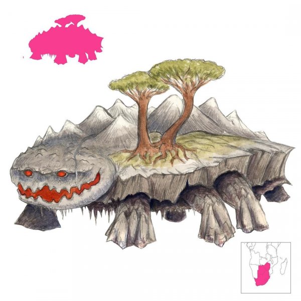 Колоссальное существо, которое буквально носит экосистемы на спине, а его голова представляет собой огромный валун. По всей видимости, является олицетворением оползней.