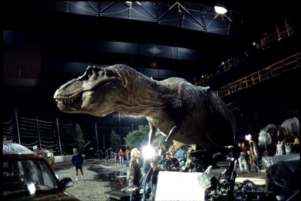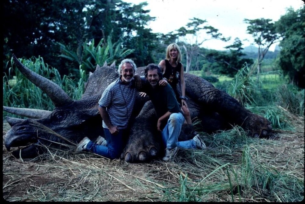 2. Лора Дерн, Сэм Нил и Стивен Спилберг за кулисами "Парка юрского периода", 1993 год