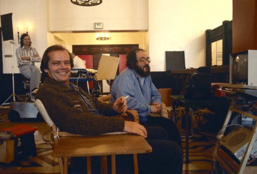 9. Джек Николсон и режиссер / сценарист / продюсер Стэнли Кубрик не испытывают страха на съемках фильма "Сияние" 1980 год