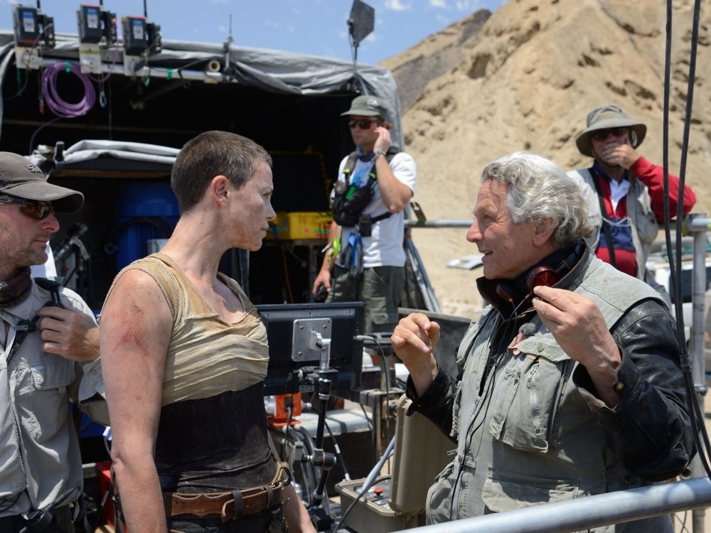 12. Шарлиз Терон с режиссёром Джорджем Миллером, в пустыне во время съемок фильма "Безумный Макс: Дорога ярости", 2015 год