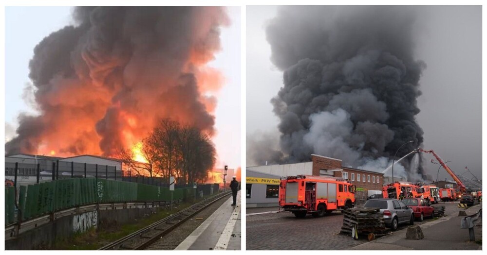 В Гамбурге произошёл пожар на складе с химическими веществами (3 фото + 2 видео)