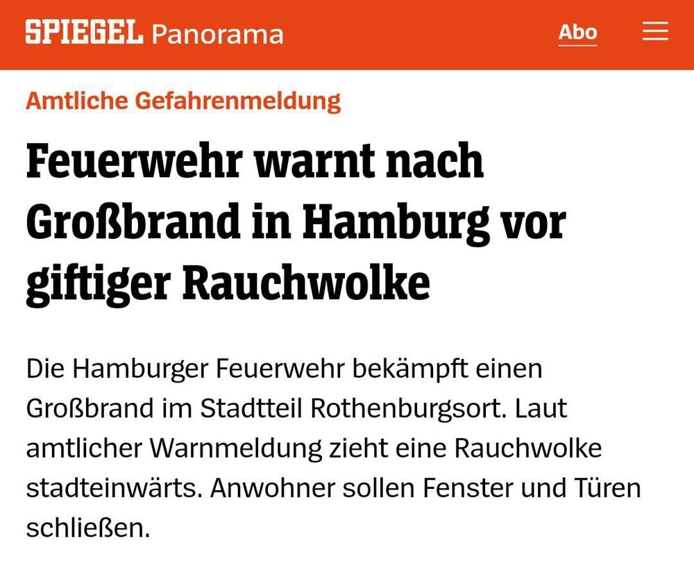 ЧП произошло сегодня в районе Ротенбургсорт. В результате пожара образовалось огромное токсичное облако.