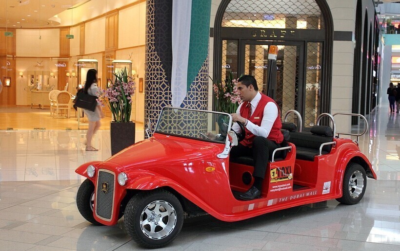 В городе многие передвигаются на такси — оно там довольно дешевое. Однако торговые центры настолько огромные, что автомобиль не помешал бы и там. Потому систему такси запустили в крупных гипермаркетах.
