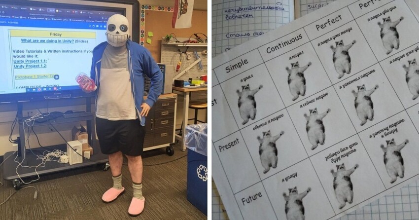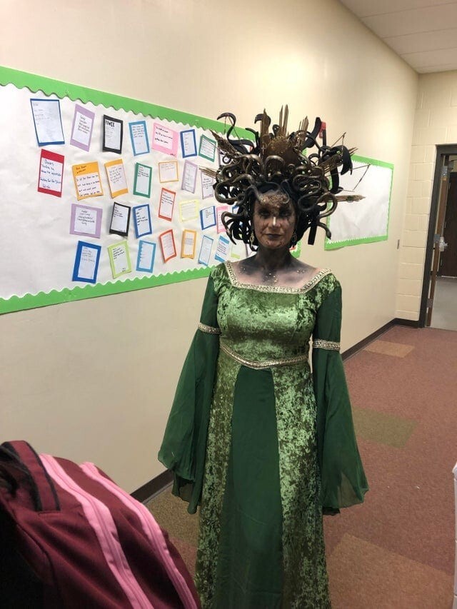 Учёба — это сложный и скрупулёзный процесс, который требует большой самоотдачи как от учеников, так и от преподавателей. И для того, чтобы как-то разбавить серые будни и поднять настроение себе и детям, некоторые учителя вовсю проявляют свой креатив и чувство юмора. Кто-то решает интересно украсить класс, кто-то старается сделать процесс обучения более увлекательным, а кто-то не остаётся в стороне от Хэллоуина и решает поразить всех своим костюмом. И такие крутые фишечки преподавателей уж точно не остаются без внимания учеников!