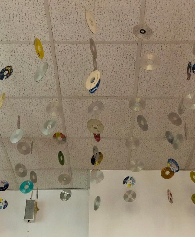 Наш преподаватель решил украсить класс своими старыми CD-дисками