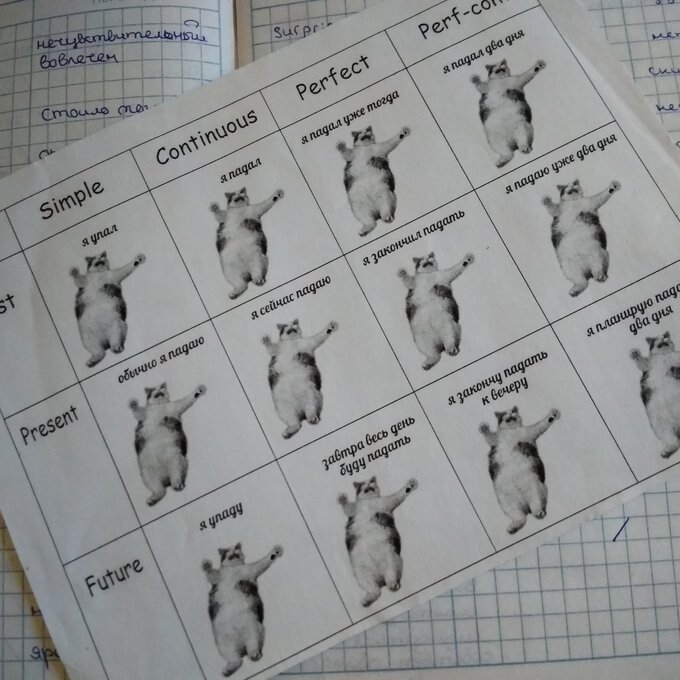 Однажды наша учительница по английскому выдала нам такую таблицу времён